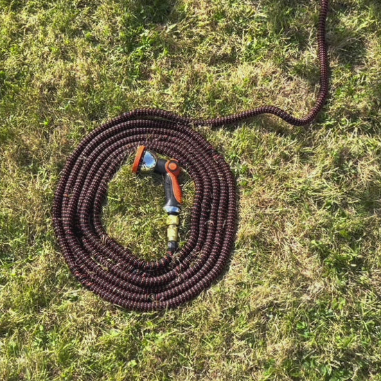 Jet Force s’étend avec l’eau et se rétracte automatiquement. Triple latex renforcé, raccord en laiton anti-fuite et pistolet métal 10 jets : puissance, précision et zéro contrainte.
